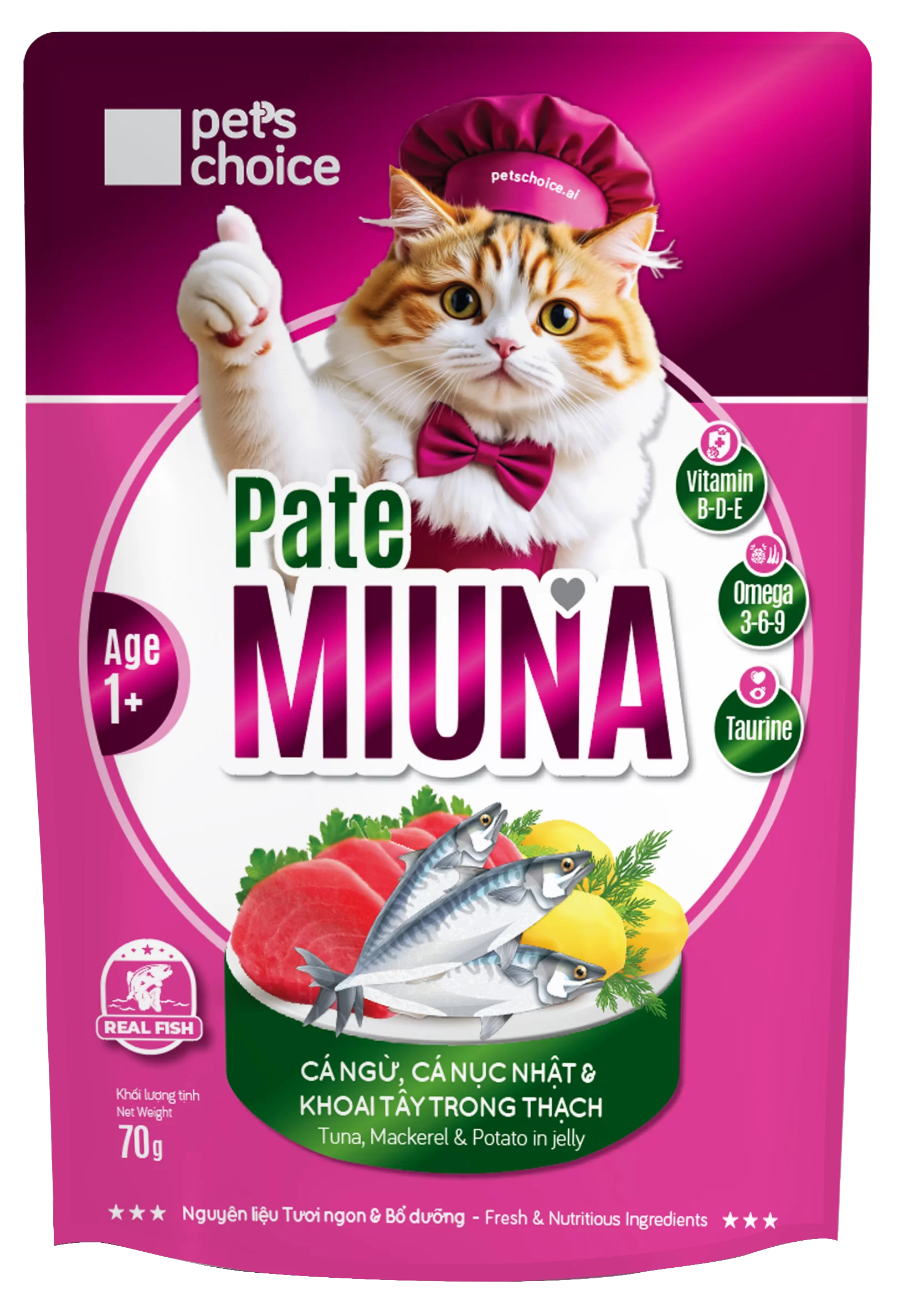Pate MIUNA cá ngừ, cá nục Nhật và khoai tây trong thạch – 70g