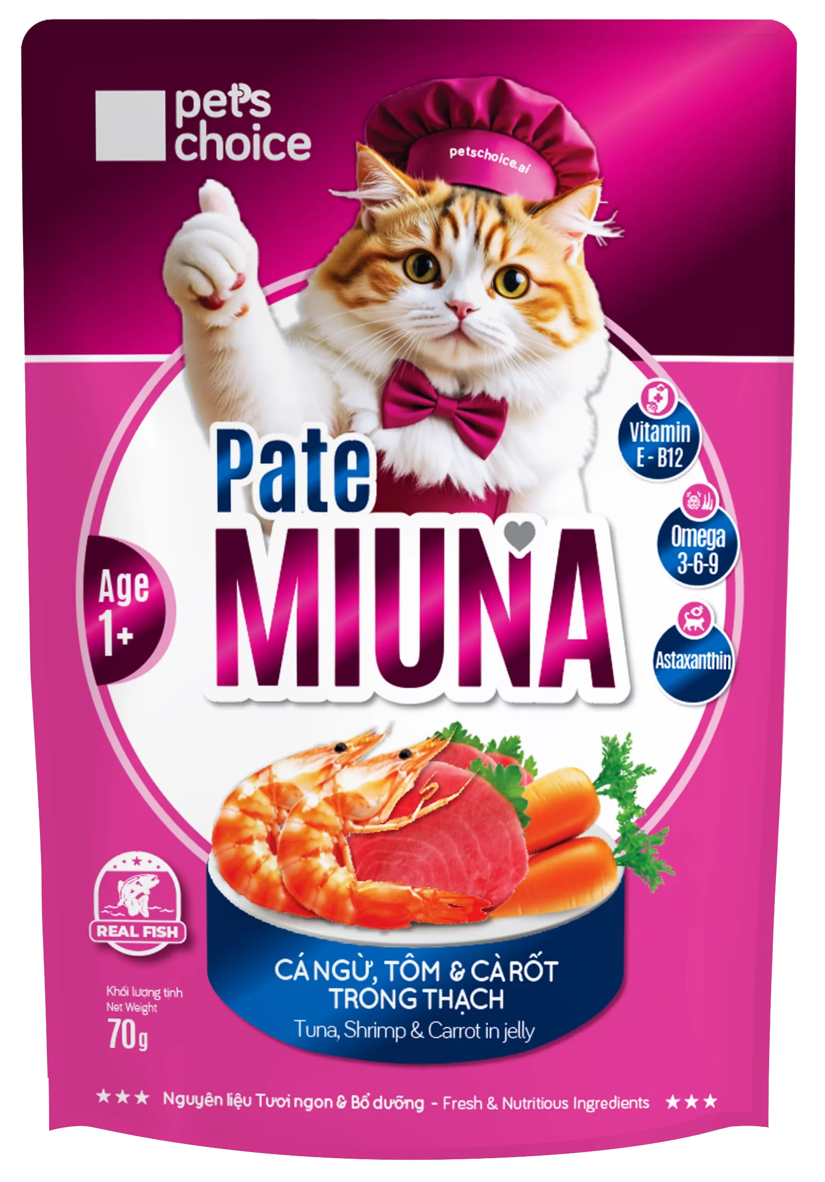 Pate MIUNA cá ngừ, tôm và cà rốt trong thạch – 70g